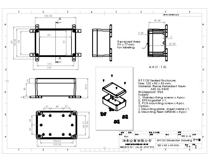 UL-94V0 light gray bottom housing.