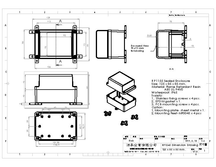 UL-94V0 light gray bottom housing.