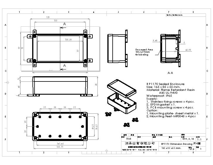 UL-94V0 light gray bottom housing.