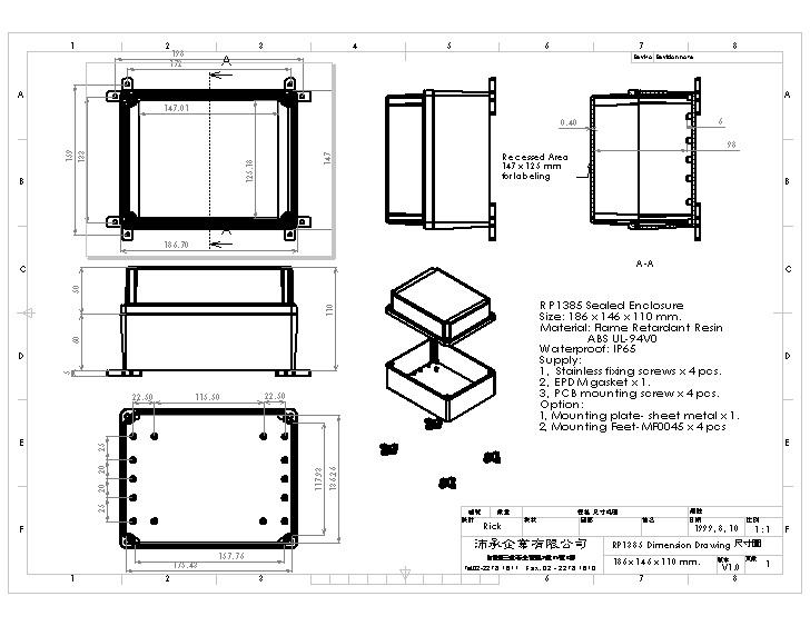 UL-94V0 light gray bottom housing.